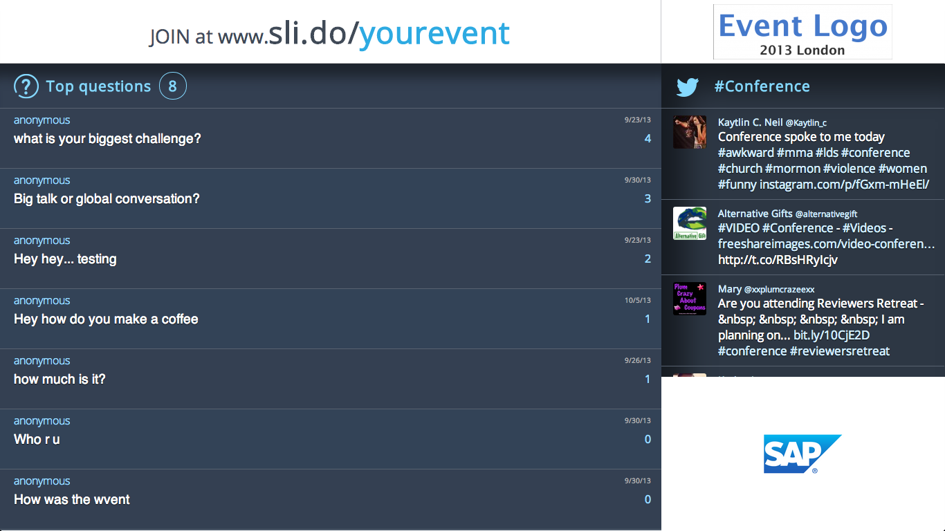 Sli.do je aplikácie pre eventy a konferencie. Pomáha organizátorom získavať feedback a komunikovať s publikom v reálnom čase. Vďaka nej už neostáva len trápne tichu bez otázok publika. Získava si čoraz väčšie uznanie v celosvetovom meradle. Už ju stihli využiť také firmy ako SAP, KPMG alebo Telefonica O2. Za touto myšlienkou sli.do stojí jej CEO Peter Komorník.