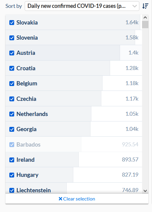 Podľa portálu Our World in Data, je tak Slovensko so sedemdňovou incidenciou 11 500 pribudnutých prípadov na milión obyvateľov krajinou s najhoršou reportovanou epidemickou situáciou na svete.