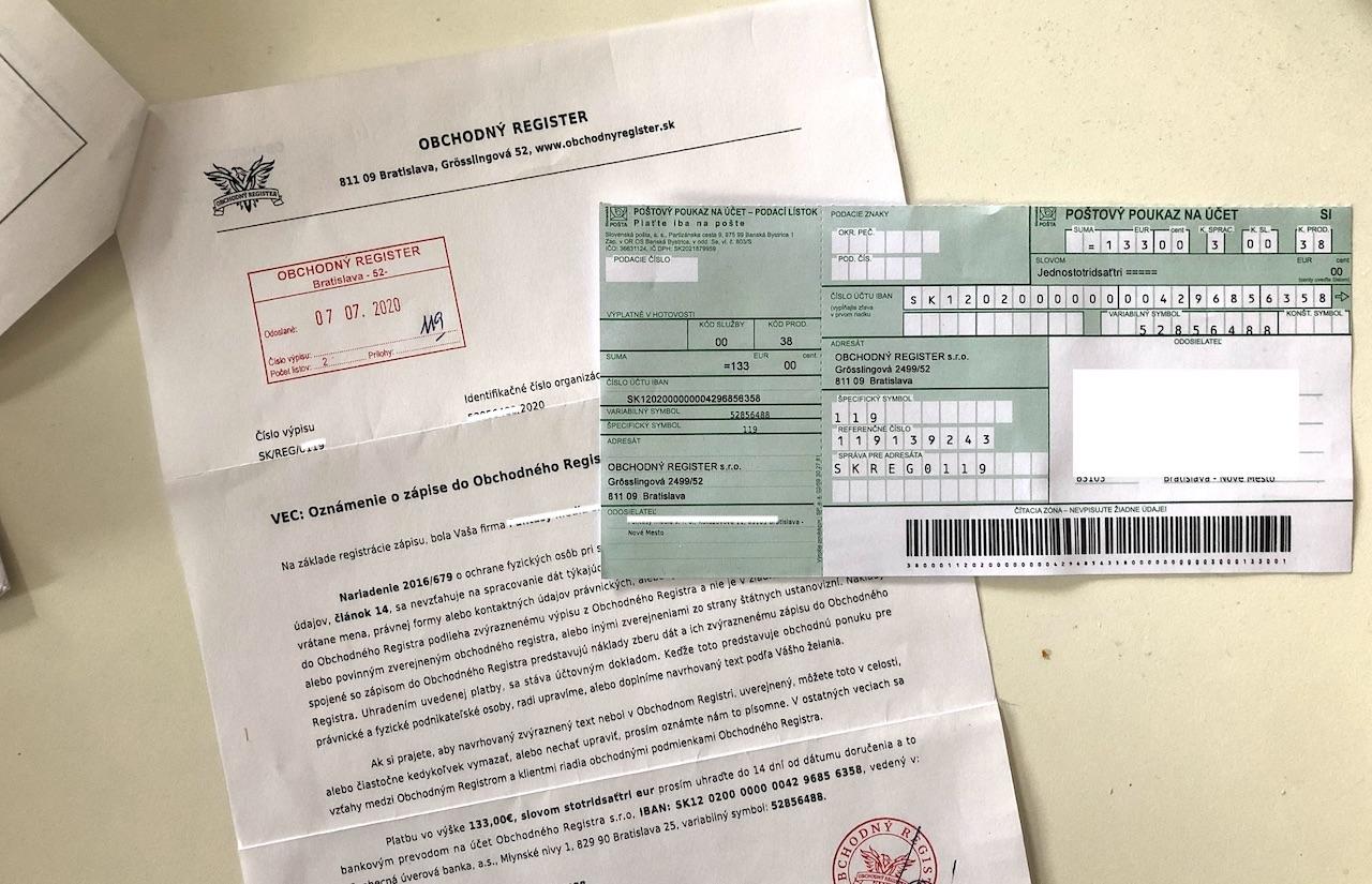 Na začiatku sú všetky prípady ako cez „kopirák“. V obálke príde „úradný list“ so šekom a výzvou na zaplatenie desiatok či stoviek eur za zápis do podnikateľského registra. List je však úradný iba na prvý pohľad.