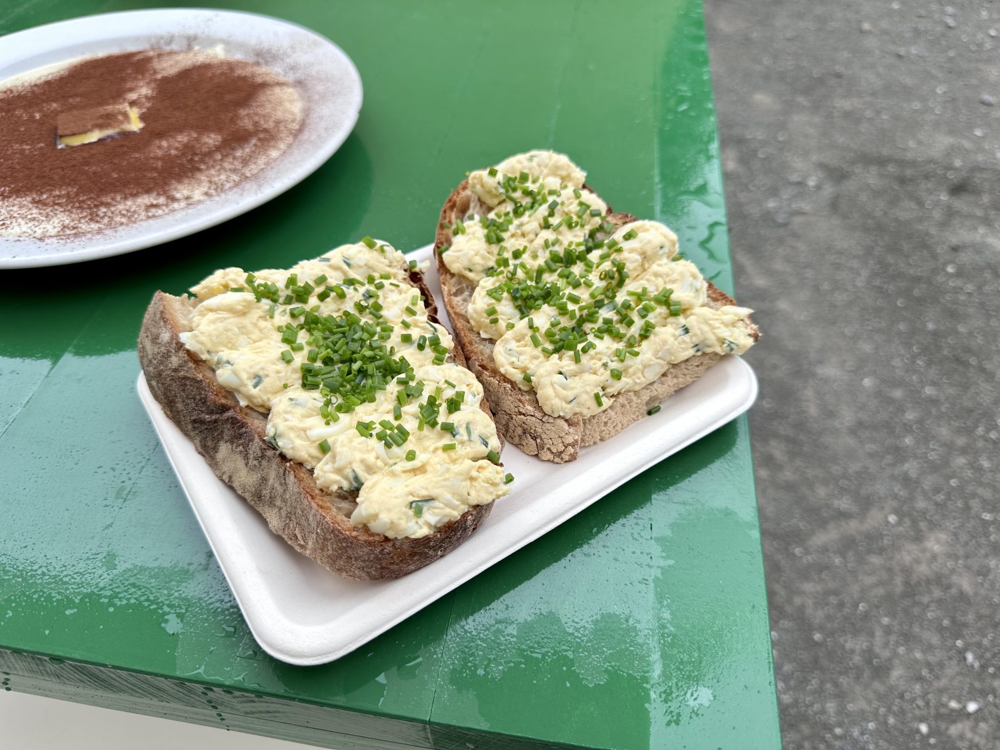 Nezabudnuteľné sú aj žufaňácke nátierky. Ja som mal vajíčkovú a je to blaho. Nezamieňať, prosím, s podobným menom, ktoré blaho rozhodne nespôsobuje. Dva riadne krajčiská dostaneš za fér 4 €.