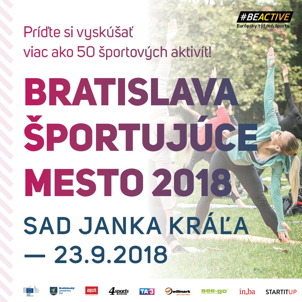 - V nedeľu 23. septembra 2018 prebehne v Sade Janka Kráľa najväčšie športové podujatie na Slovensku v rámci Európskeho týždňa športu. Už štvrtý ročník podujatia Športujúce mesto bude opäť mimoriadne zaujímavý pre všetkých ľudí, ktorí majú radi šport.