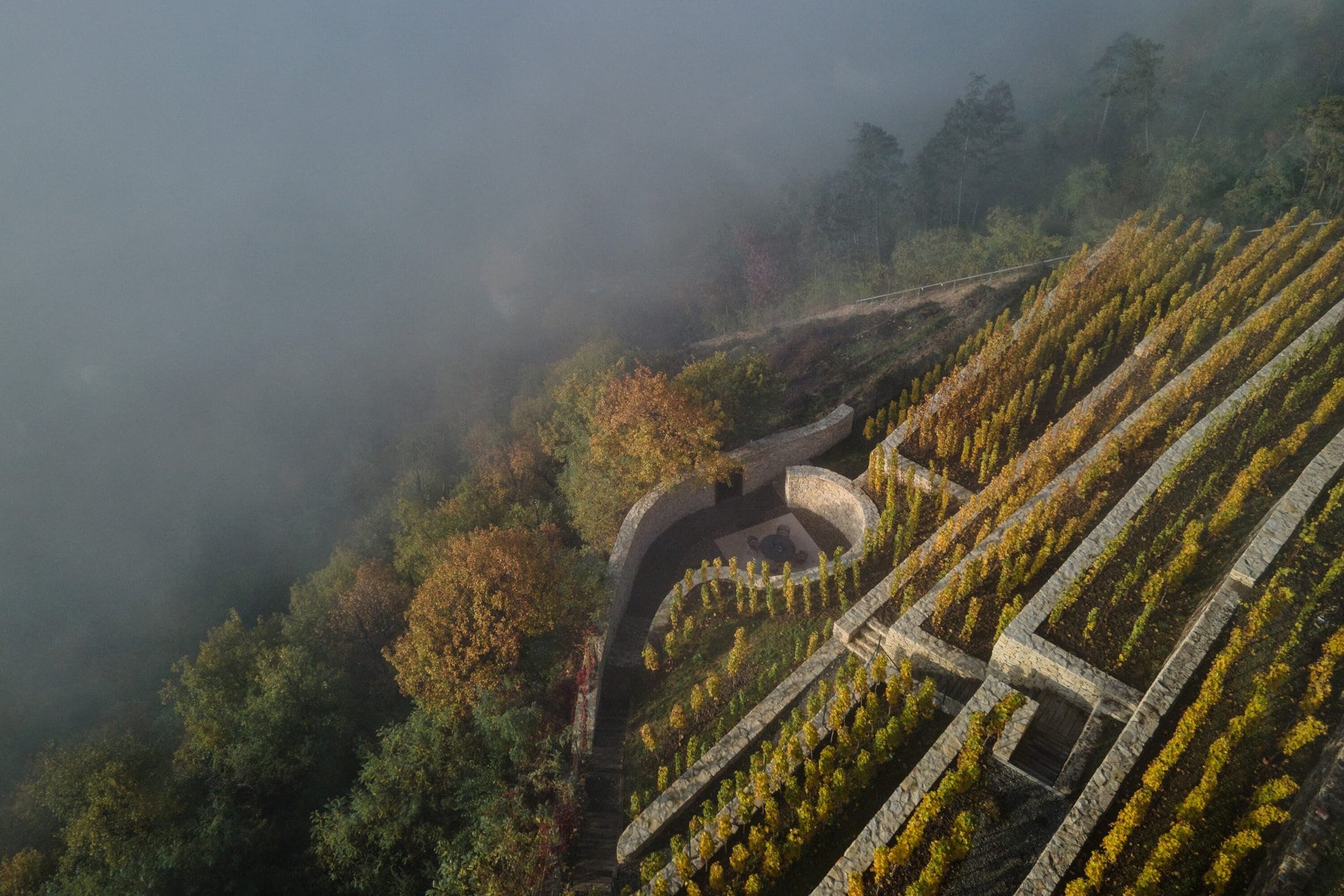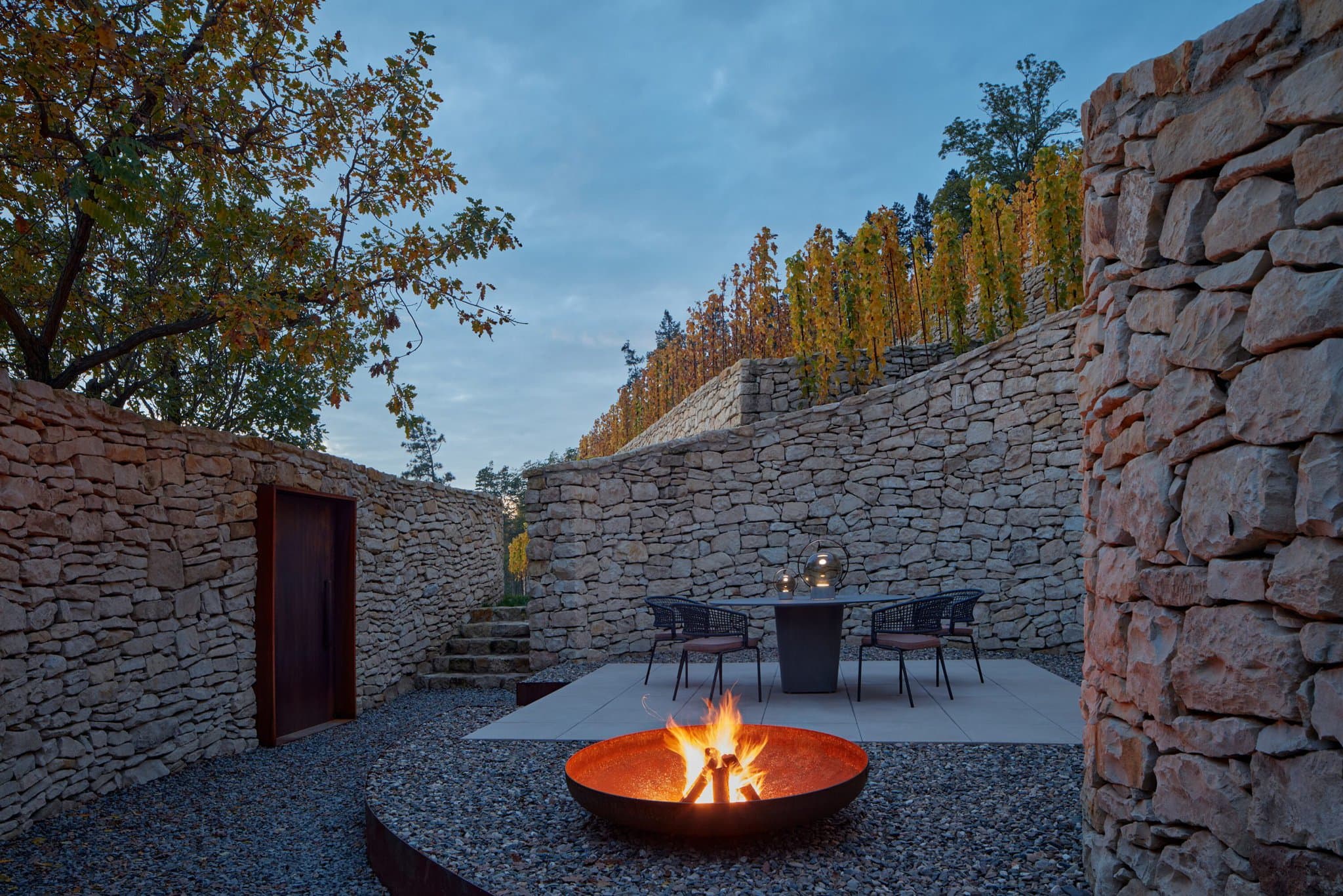 Pri budovaní terasovitého vinohradu bola odkrytá kamenná ruina akéhosi zakriveného priestoru. Keďže pôvodné kamenné múry boli nepatrne zahĺbené do okolitého terénu, boli využité ako základ pre tvorbu nového návrhu.