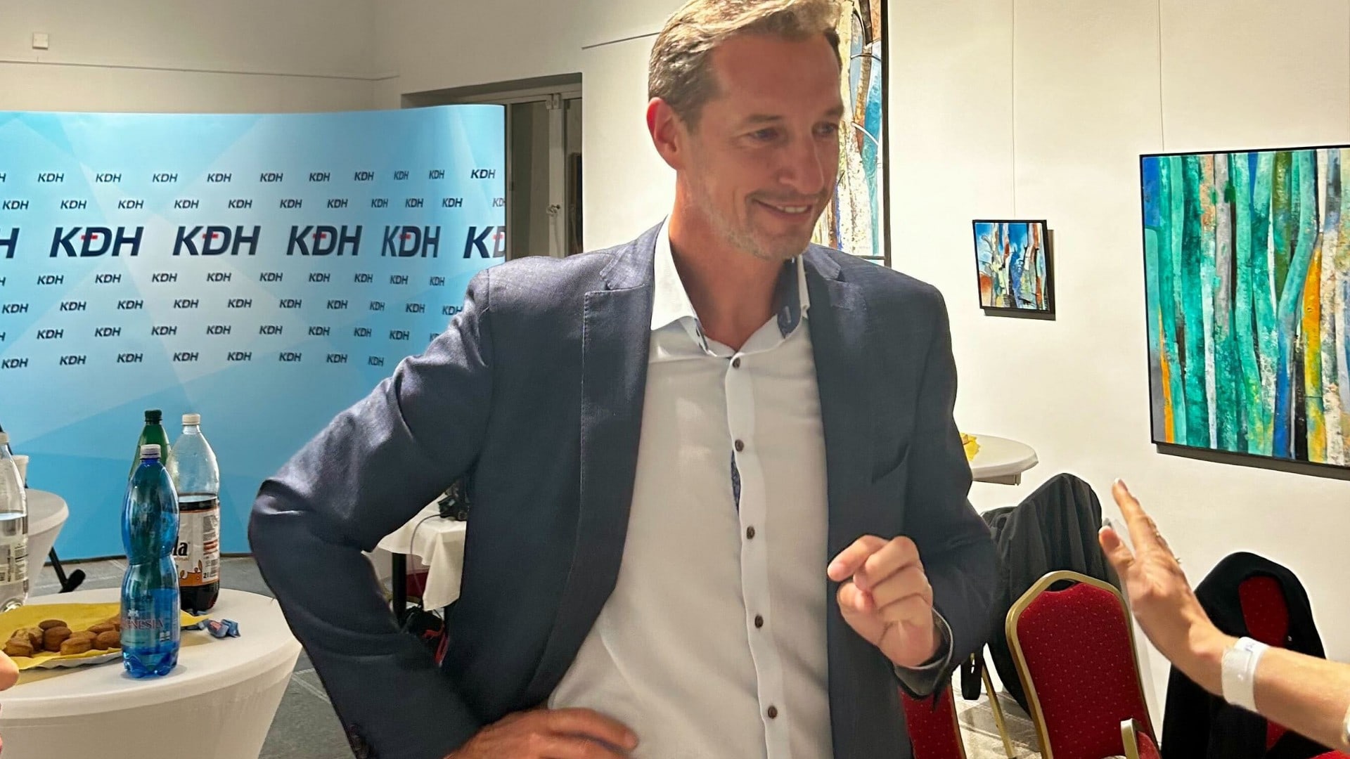 23:48 (KDH) Po boku predsedu Milana Majerského stojí jeho manželka Miriam Lexmann