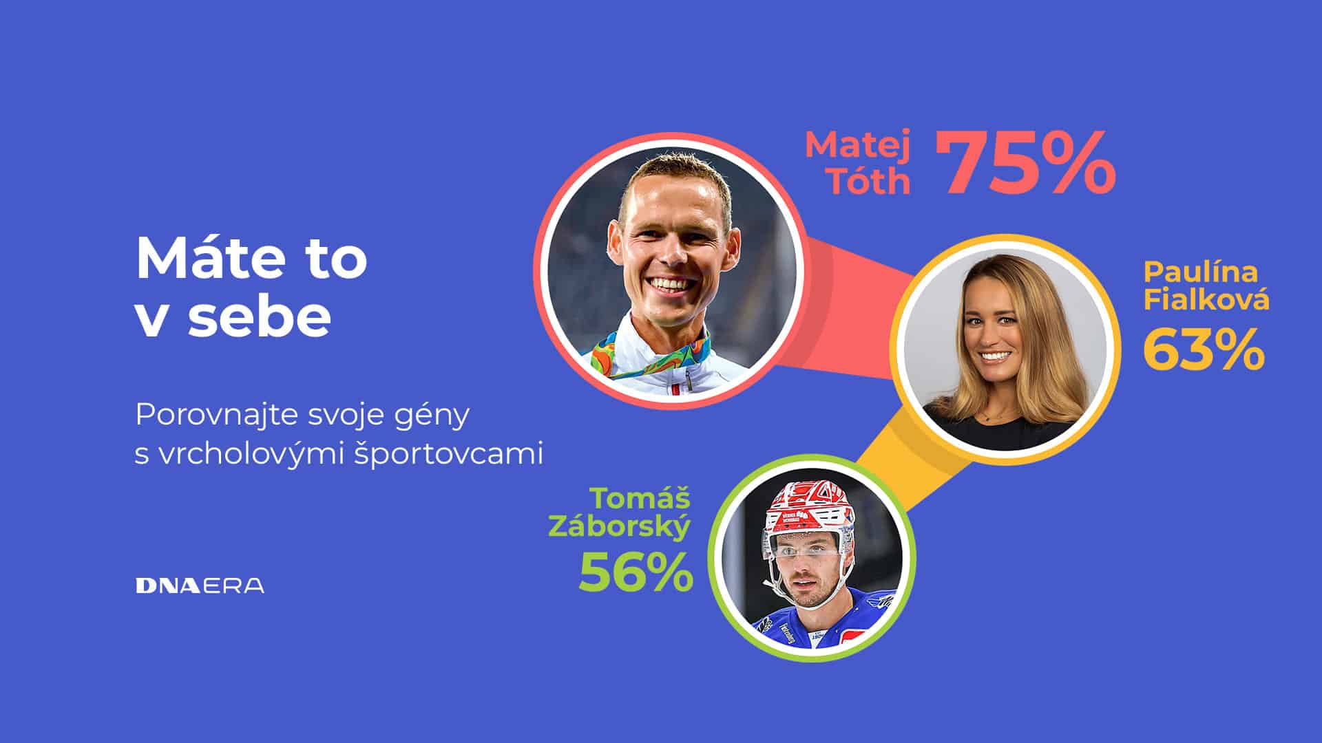 - Umožňuje porovnať gény so športovcami ako Matej Tóth, Ján Volko či Paulína Fialková