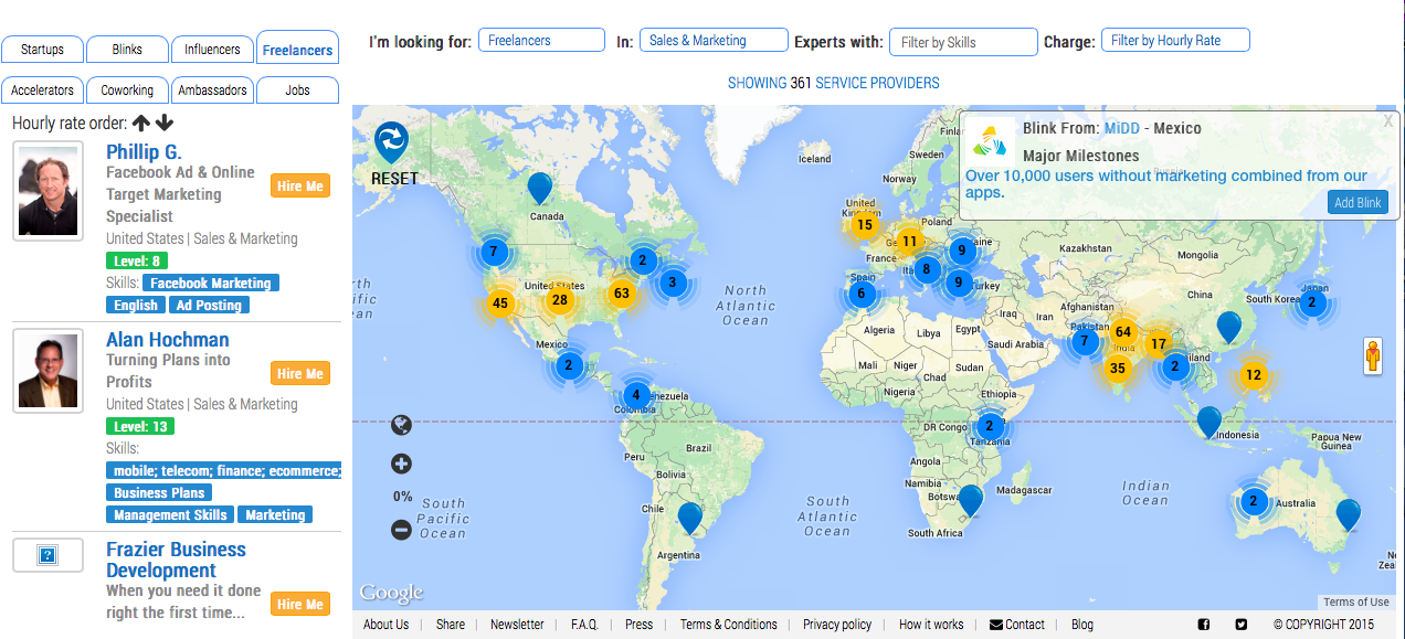 To čo robí StartupBlink jedinečnou je to, že sleduje aj jednotlivé ekosystémy, čo som osobne ešte nikde nevidel. Sleduje jednotlivcov ako Mukund Mohan, Ben Horowitz, Steven Sinofsky, Gary Veynerchuk a kopa ďalších. Taktiež ponúka slušný prehľad freelencerov. Cez jednoduchý filter nájdete hneď všetko, čo potrebujete.