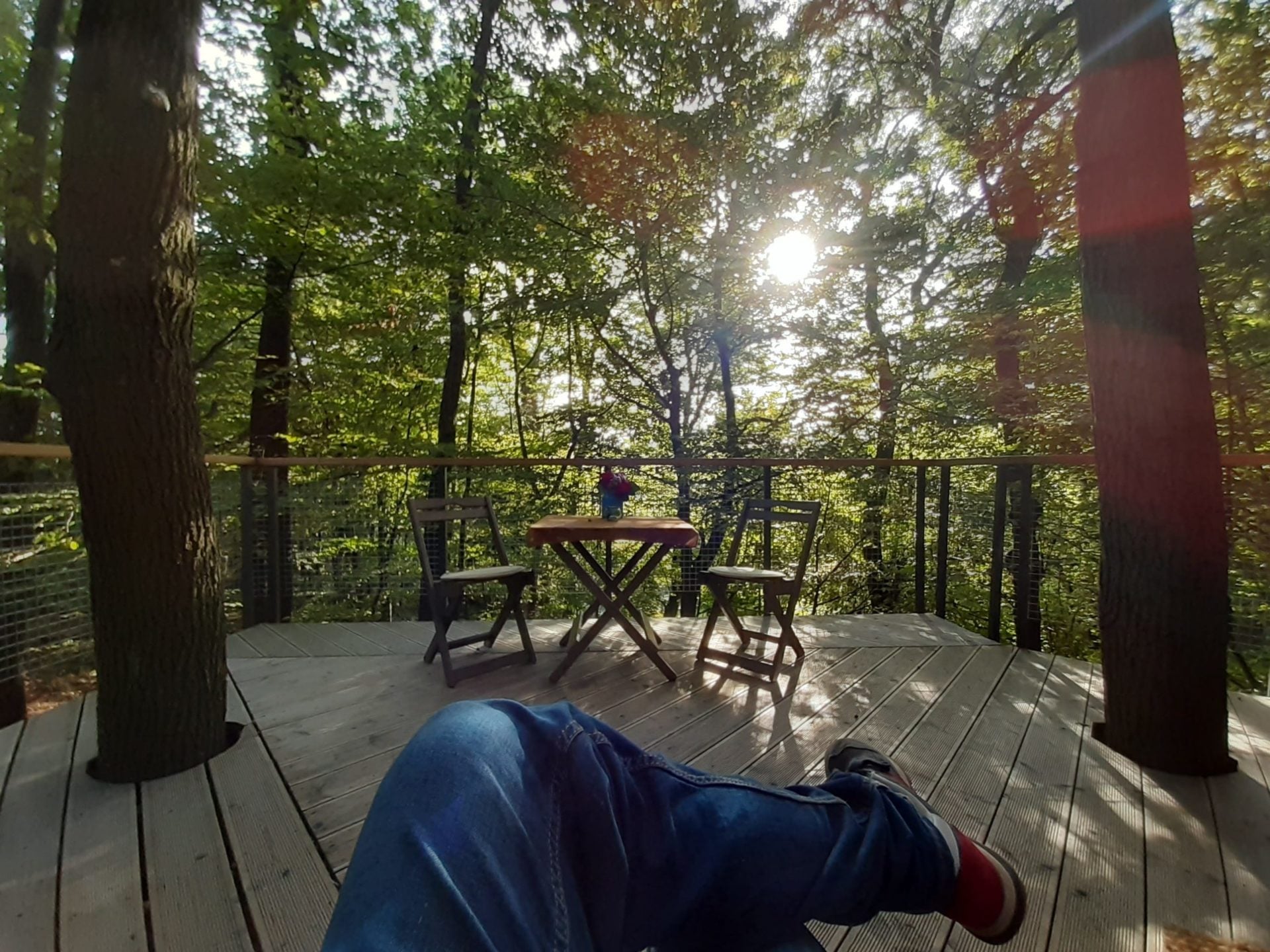 Rozhodne najatraktívnejšou časťou domu je priestranná terasa s vonkajším sedením a hojdacou sieťou. Na terase je kladka, ktorou si hore vytiahneš každé ráno čerstvé raňajky v košíku. V domčeku sa nenachádza elektrina ani voda, k dispozícii je však sada lámp a sviečok.