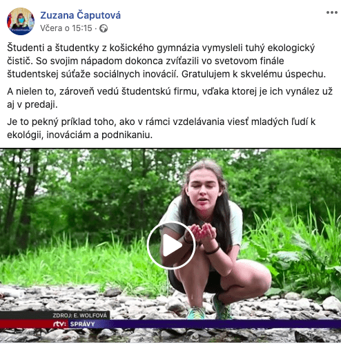 Úspech študentov vyzdvihla aj prezidentka Slovenskej republiky, Zuzana Čaputová. Sama sa totiž zaujíma o ekológiu a všíma si podobné projekty. Študentov pochválila na svojom facebooku.