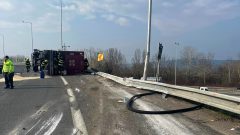 VIDEO: Na diaľnici D1 sa prevrátil kamión. Dopravu na mieste odkláňajú