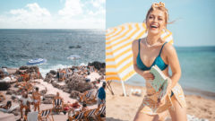 na snímke je zachytená talianska pláž a žena v bikinách na pláži