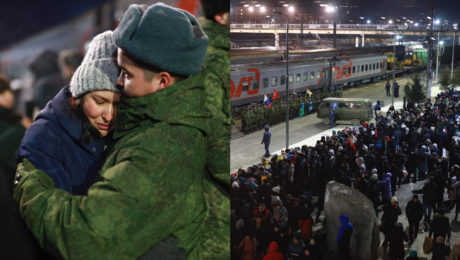 Ruský vojak sa objíma s partnerkou. Rusi odprevádzajú vojakov