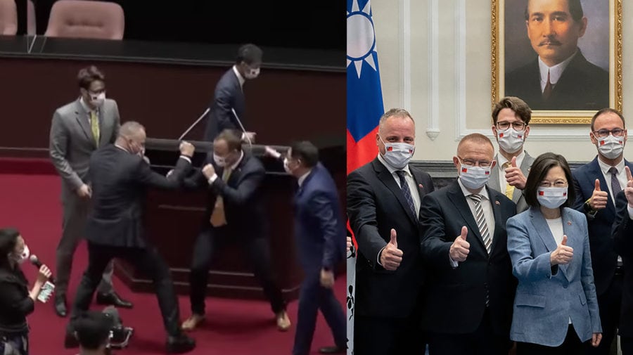 - Slovenskí politici zinscenovali v taiwanskom parlamente bojovú scénu