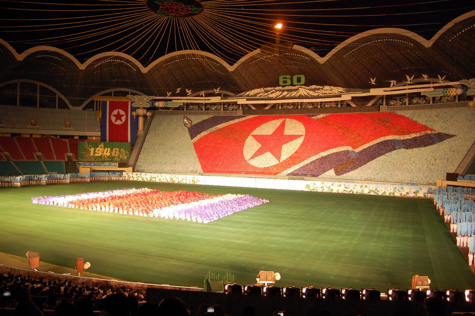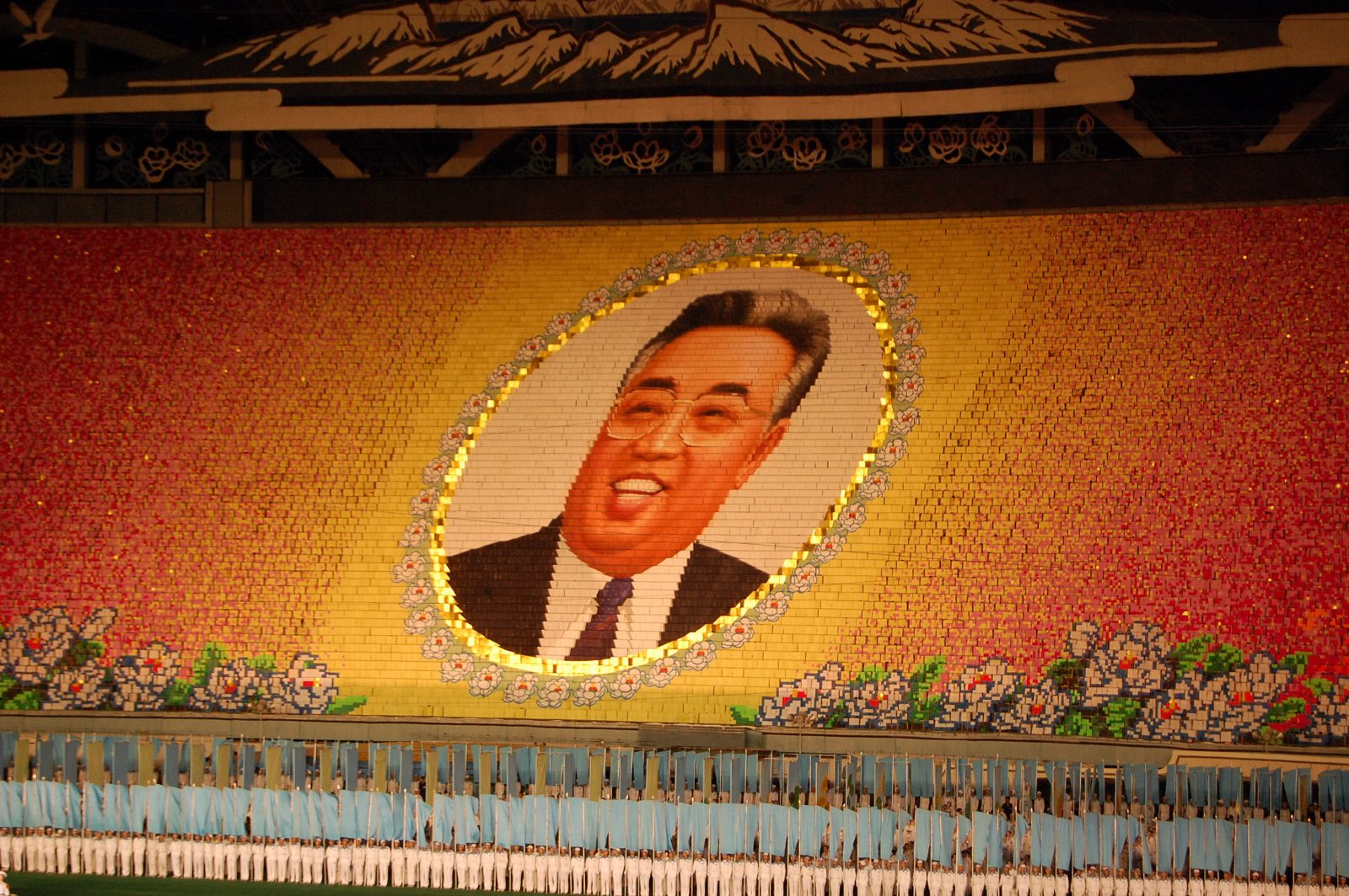 Ten bol v čase keď prezident Kim Ir-sen mal narodeniny. On je večným prezidentom aj napriek faktu, že zomrel. Majú len veľkého vodcu, veľkého kormidelníka… Oslavuje sa to 3 mesiace v roku. A každý deň počas týchto 3 mesiacov vystupujú účinkujúci na štadióne. Sú to deti, ktoré majú v rukách obrovskú knihu, kde každá strana knihy je zafarbená inak. A tie deti vedia, ktorú stranu majú otvoriť. Je to súbor 20 000 detí. Zmenia obraz lusknutím prsta. Keď som podobné akcie videl v Pekingu, tak oproti tomuto bol ten ceremoniál nepodarenou akciou.