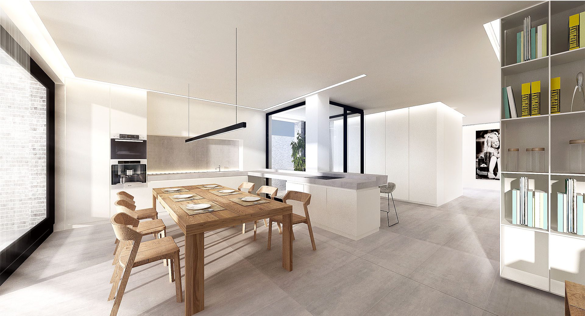 Penthouse je situovaný na štvrtom podlaží novostavby, ktorá disponuje výťahom. Za povšimnutie stojí jednoznačne priestranná obývacia časť, ktorej súčasťou je aj jedáleň a kuchynská zóna. Kuchyňa sa k novému majiteľovi dostane zariadená spotrebičmi značky Miele.