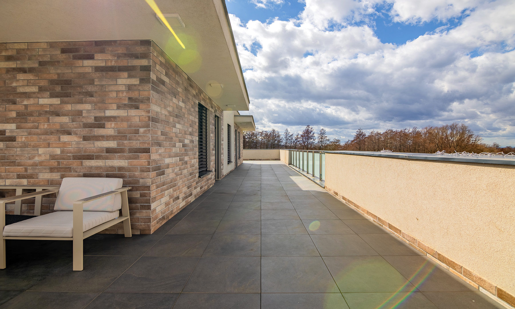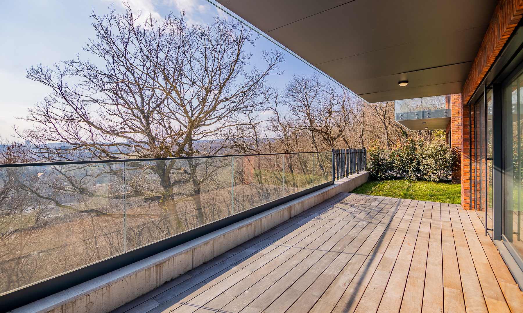 Zaujímavosťou je, že v jednom viladome sa nachádzajú len 3 veľké byty, pričom každý z nich sa rozprestiera na vlastnom podlaží. Vstup do bytu je riešený jedinečne – dostaneš sa doňho výťahom priamo z garáže.