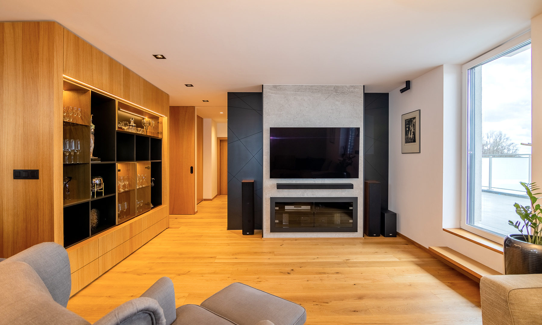 Byt sa predáva kompletne zariadený. Sú v ňom použité materiály ako dubové parkety a štýlové obklady, no zaujme aj kamenná stena, ktorá je súčasťou obývacej časti. Jeho súčasťou sú aj dve parkovacie miesta v podzemnej garáži, dve vonkajšie státia, podlahové kúrenie, klimatizácia a exteriérové žalúzie.