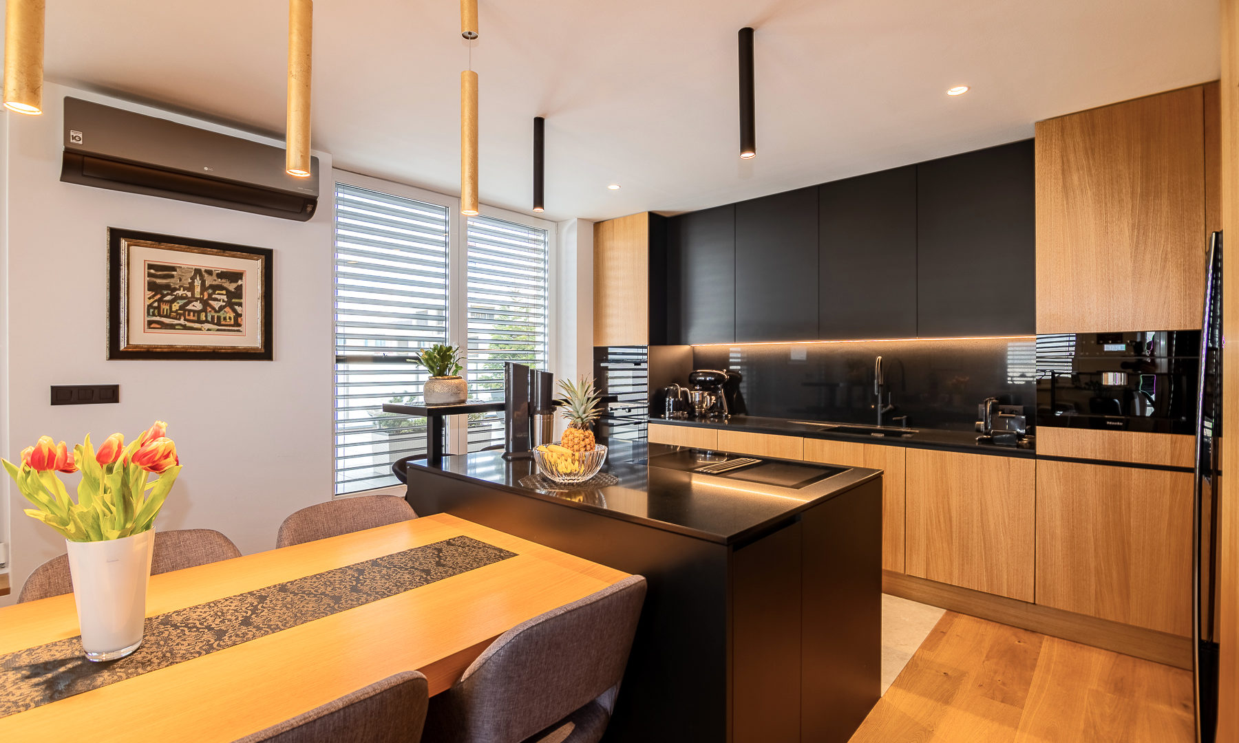 Jednotlivé apartmány sa dajú kúpiť samostatne, no rezidencia sa predáva aj ako ucelený komplex. Aj v tomto prípade je samozrejmosťou podlahové kúrenie, stropné chladenie, exteriérové žalúzie, podzemná garáž, výťah a kamerový systém.