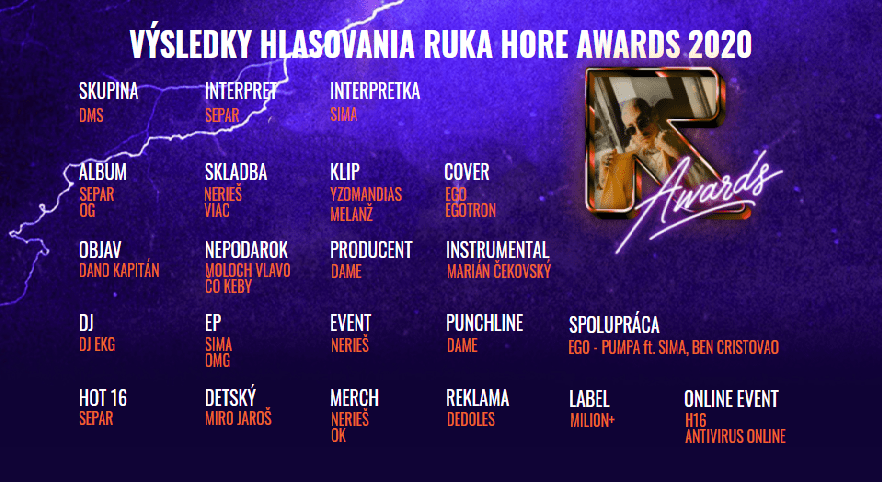 Pozrite si kompletný zoznam víťazov rekordného 8.ročníka RUKA HORE AWARDS: