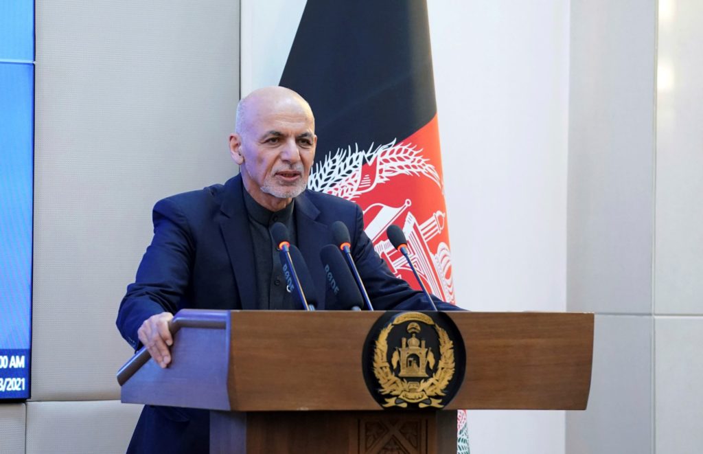 „Musím buď čeliť ozbrojeným (členom) Talibanu, ktorí chcú vstúpiť do paláca, alebo opustiť krajinu, ktorej ochrane a starostlivosti som sa venoval posledných 20 rokov svojho života,“ napísal. „Taliban dal jasne najavo, že sú pripravení vykonať krvavý útok na celý Kábul… aby ma zbavili moci. Aby som zabránil záplave krviprelievania, rozhodol som sa odísť,“ zdôvodnil. Ak by v Kábule zostal, viedlo by to podľa jeho slov k smrti nespočetného množstva ľudí, zničeniu šesťmiliónového mesta a došlo by k „obrovskej humanitárnej katastrofe“.