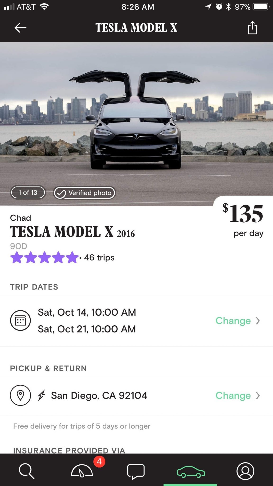 Turo prenajíma luxusné autá v 5-tisíc mestách, a to všetko od Mercedesu až po Maserati. Ceny sa pohybujú od 25 do 170 eur na deň. Chad Hurin začal prenajímať model S vo februári a model X v máji. Pár takto zarobil viac ako 20-tisíc eur (pričom nezahrnuli poplatky, ktoré idú službe Turo). Majú teda dosť na to, aby splatil mesačné splátky na vozidlá a zostáva im aj navyše. ,,Za autá sme nemuseli platiť nič z našich peňazí, odkedy ich prenajímame,“ povedal Hurin.
