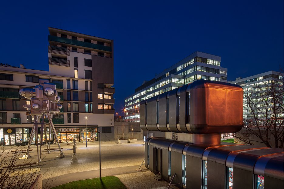 - Stavba je prvou realizáciou ateliéru Black n 'Arch, v ktorom pôsobí umelec David Černý známy predovšetkým svojimi provokatívnymi sochami a inštaláciam po boku architekta Tomáša Císařa