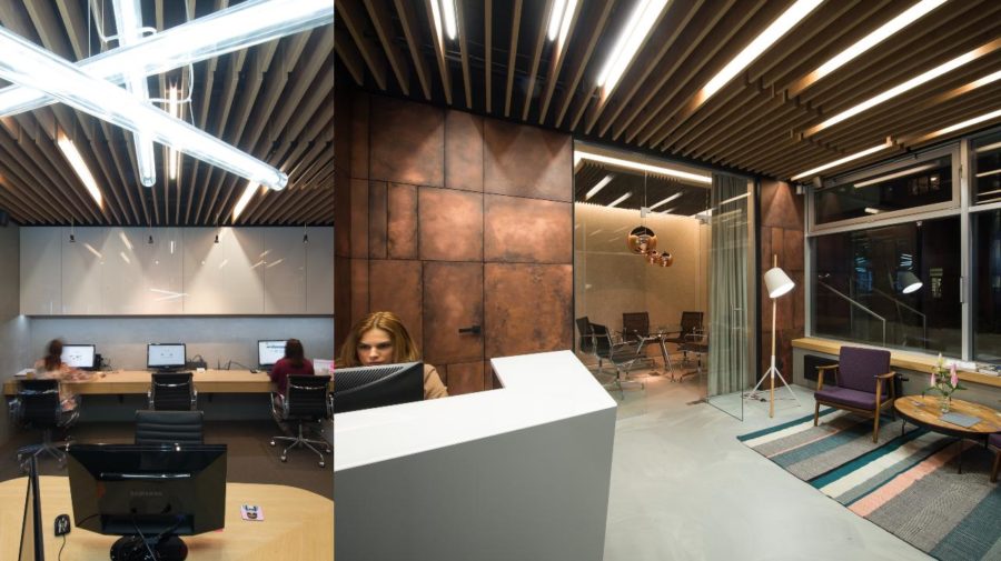 Je prvým objektom, na ktorý prichádzajúcemu padne zrak a vďaka transparentnej “pokožke” interiéru, je výborne čitateľný z rôznych uhlov a aj z exterieru kancelárie.