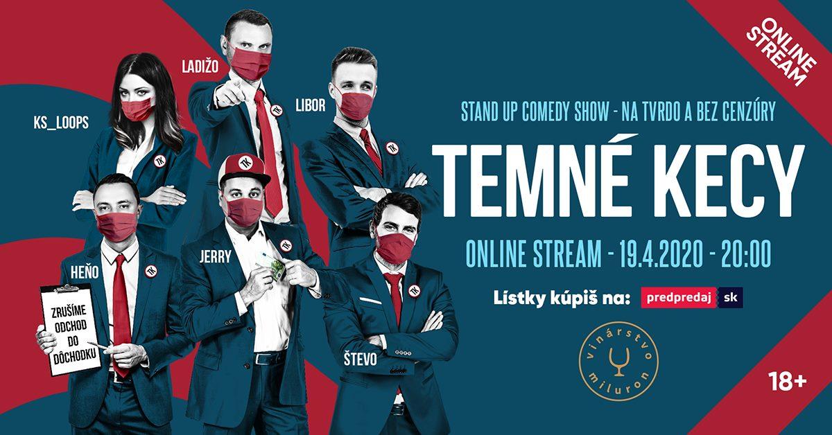 Temné Kecy majú za sebou stovky vypredaných vystúpení , desaťtisíce predaných lístkov a desiatky milionov zhliadnutí na internete .Pre veľký záujem a preto lebo si to zaslúžite, prinesú v stanovenom termíne , 19.4. 2020 o 20.00 hod, priamo k vám domov (alebo kde len chcete) svoju najnovšiu premiérovú show z februára 2020 v HD televíznej kvalite , ktorá ponúkne dve a pol hodiny najlepšieho česko-slovenského stand-up humoru!