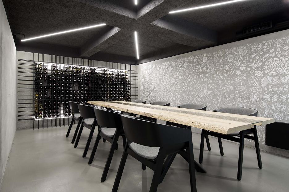 Objekt je tvorený troma podlažiami s rozdielnou funkciou. V podzemnom podlaží sa nachádza spoločenský priestor vínnej pivnice a lounge kde sme sa rozhodli priznať surové stavebné prvky interiéru v kontraste s vloženými drevenými prvkami stolov či vínnej steny.