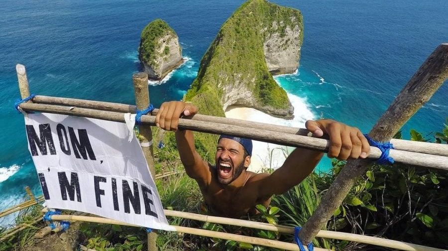 Tento chalan sa rozhodol precestovať celý svet. Aby sa jeho mama nebála, z každého mieste jej posiela fotografie s nápisom: „Mami, som v poriadku.“
