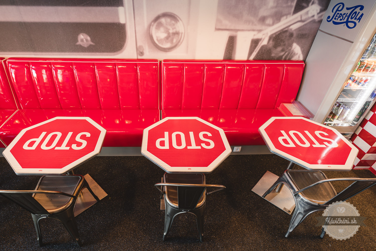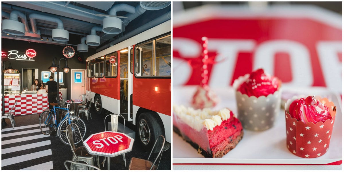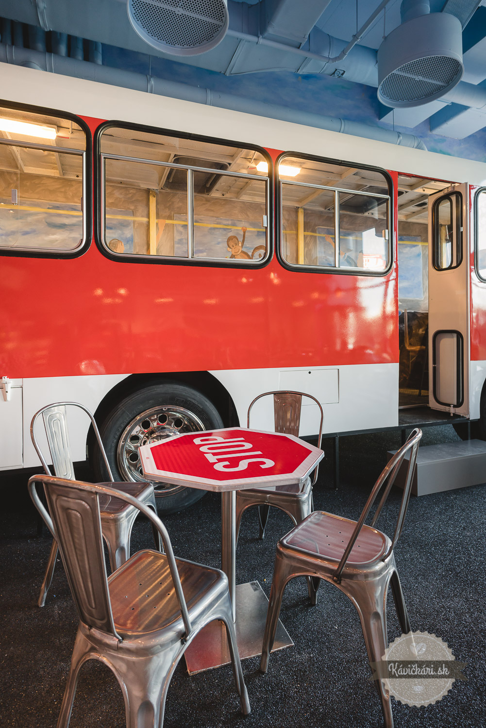 Toalety zväčša nebývajú hlavnou destináciou akéhokoľvek podniku. Ak sa však objavíte v Bus Stop, určite ich navštívte. Stav ich aktuálnej obsadenosti vám totiž prezradí vtipný veľký semafor, ktorý jednoducho musíte vidieť. Celý dizajn a detaily podniku navrhoval sám majiteľ, ktorý sa inšpiroval starými americkými dinermi a dopravou, ktorá je na tomto mieste všadeprítomná. V Bus Stop si dokonca môžete objednať aj tradičný americký milkshake. Zdravšou verziou sú vlastné prírodné ovocné džúsy vo fľaštičkách, ktoré si môžete so sebou zobrať i na cestu.