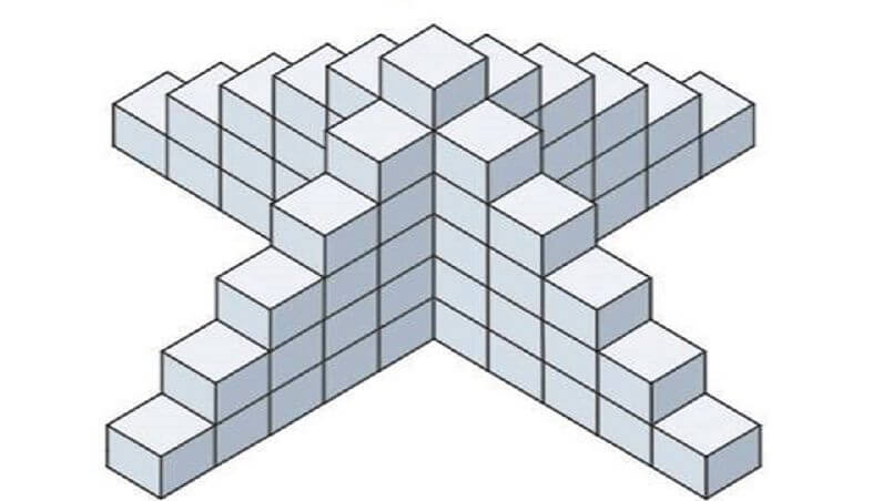 Správna odpoveď je 66. Každé krídlo obsahuje 15 kociek a k nim je nutné pripočítať 6 kociek, ktoré sú v strede a spájajú jednotlivé krídla.
