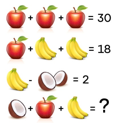 Ak si si myslel, že správna odpoveď je 16, mýlil si sa. V poslednom riadku sú totiž iba 3 banány a jedna polovica kokosu.