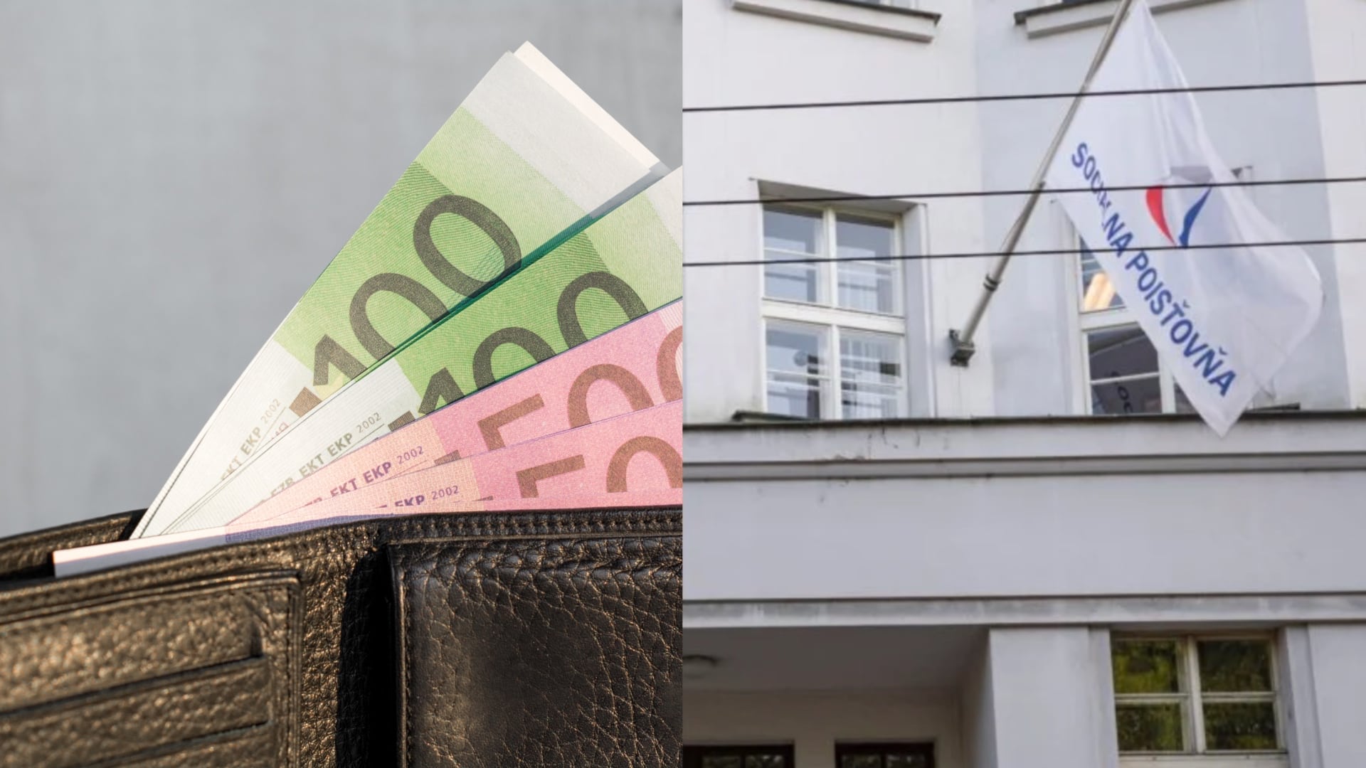 Na snímke sú eurobankovky a Sociálna poisťovňa