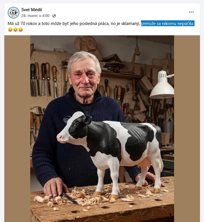Aj preto je dnes dôležité nielen upozorňovať, ale aj vzdelávať a zvyšovať digitálnu gramotnosť bežných používateľov. Ak niekto zdieľa podobné príspevky, pomôže vecný komentár alebo súkromné upozornenie. Príspevok je tiež možné nahlásiť ako „falošné informácie – spoločenská záležitosť – generované AI“.