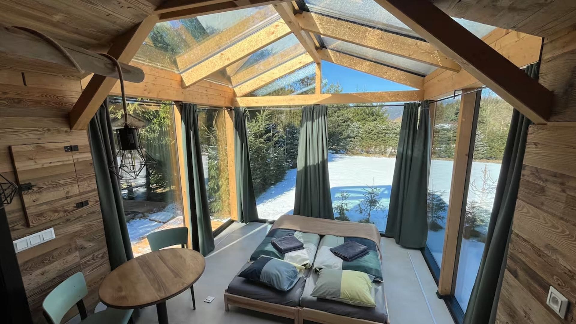 O nádherné výhľady sa postará ďalšie zážitkové ubytovanie, tentokrát v lokalite blízko Martina. Ubytovať sa tu môžu až štyri osoby. Nájdeš tu jednoduchú kuchyňu, toaletu, vnútorné kachle a veľkú terasu, avšak treba upozorniť na neprítomnosť elektrickej prípojky. Vonku sa nachádza miesto na grilovanie s nádherným výhľadom na Malú a Veľkú Fatru. Ubytovanie sa nachádza mimo civilizácie v krásnom prostredí lúk, avšak len na skok od mesta Martin.