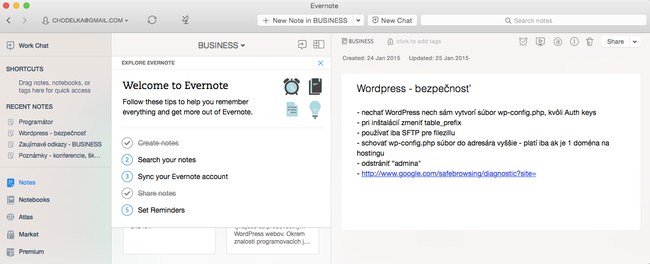 Výborný nástroj na zapisovanie poznámok, ukladanie potrebných dokumentov a archivovanie zaujímavých článkov. Dokáže tiež uložiť článok z webu pomocou tzv. Evernote Web Cliperu alebo aj oskenované dokumenty, poprípade printscreeny.