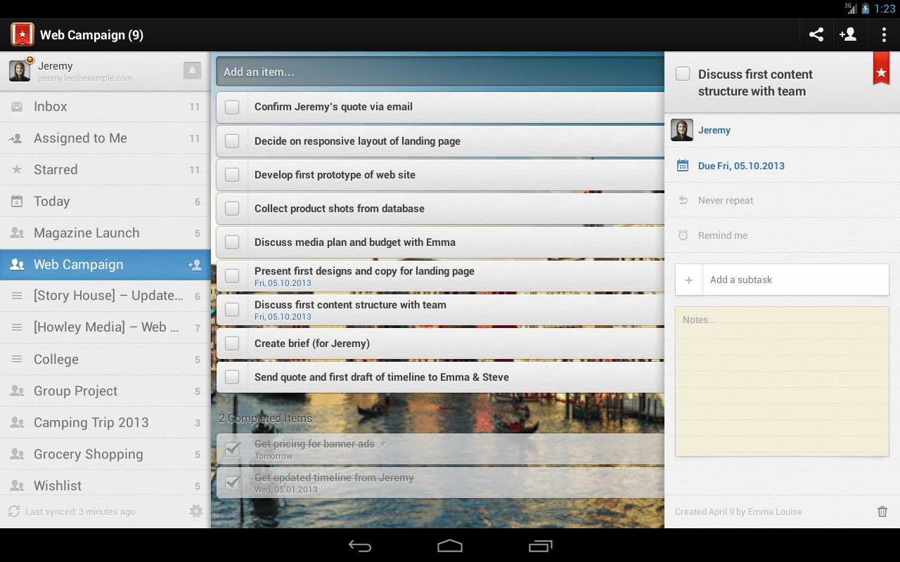 Aplikácia, ktorá je považovaná za jednu z najlepších na organizáciu tvojho pracovného ale aj súkromného života. To Do List je najdôležitejšou časťou efektivity, prinúti ťa urobiť veci, ktoré sú potrebné. Ak úlohu splníš, stačí ju zaškrtnúť a automaticky sa presunie medzi „completed.“ Zahŕňa aj notifikácie, možnosť pridávania poznámok alebo deadline-ou.