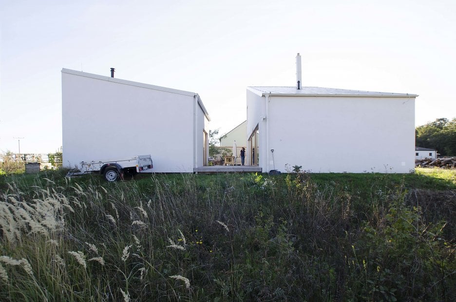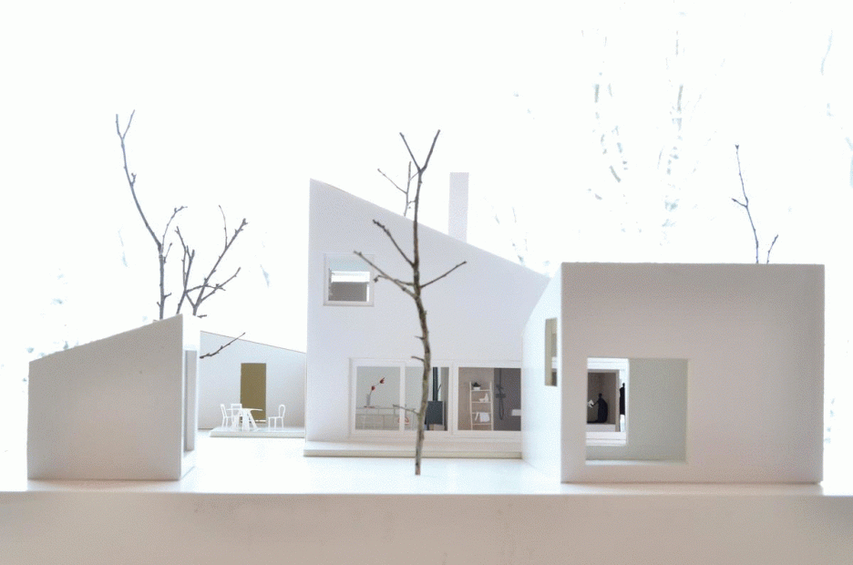 Jednoduchý obdĺžnikový tvar s pultovou strechou je osadený tak, aby dom poskytoval dostatok súkromia na záhrade. Štít strechy je otočený smerom k ulici, aby dom pôsobil menší. Rozdelenie do troch menších stavebných objektov s pultovou strechou zmenšuje celkový pocit mierky a tak sa blíži k vidieckej štruktúre zástavby. Dom pôsobí ako malá vidiecka usadlosť.