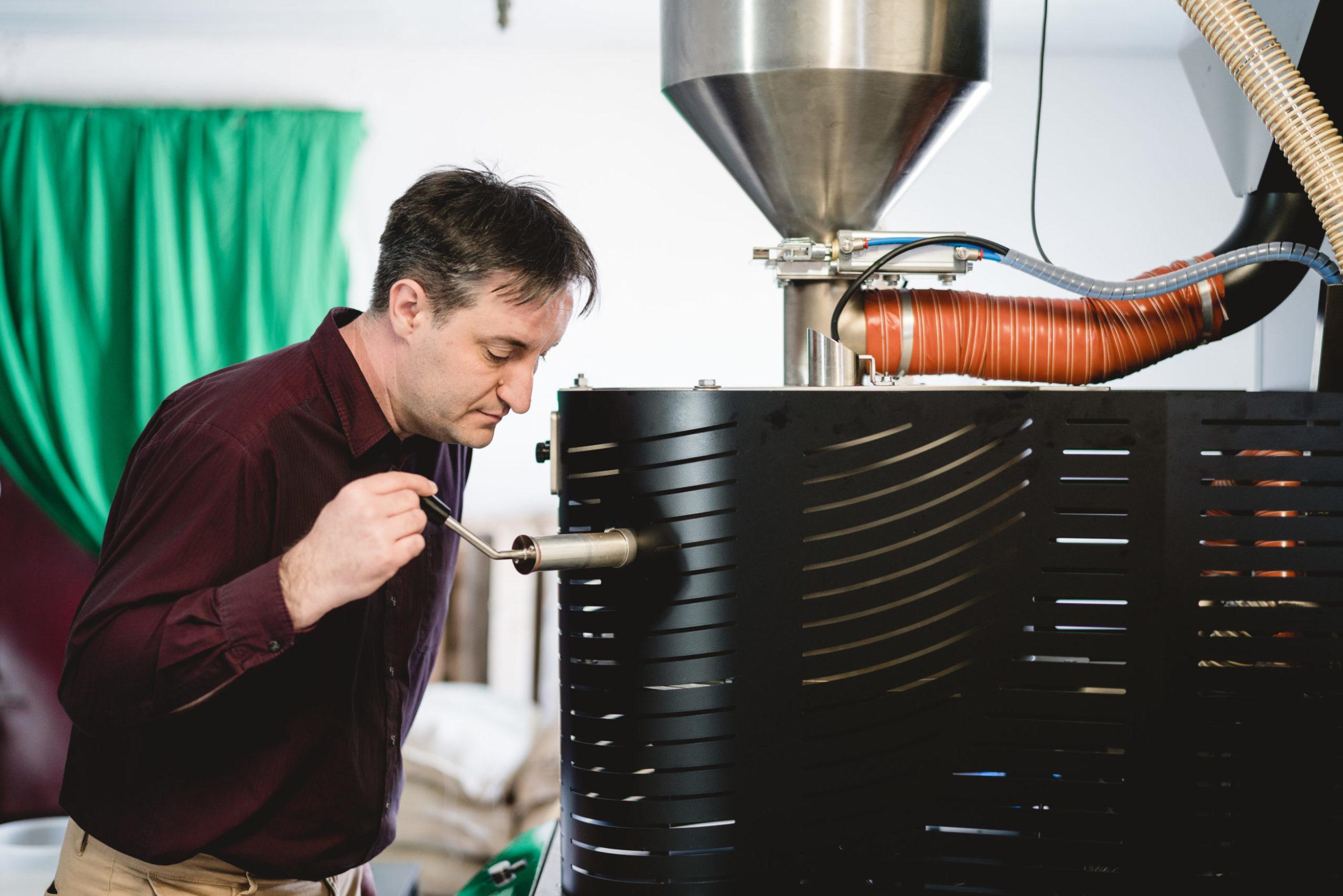 Ich pražiar Andrej celý proces praženia kávy sleduje, kontroluje a v prípade potreby robí mierne úpravy napríklad nastavovaním účinnosti horákov či zmenou rýchlosti rotácie bubna. Práve vďaka unikátnemu spojeniu ručnej výroby a najmodernejších technológií je Giesen jedným z najlepších strojov vo svojej kategórii.