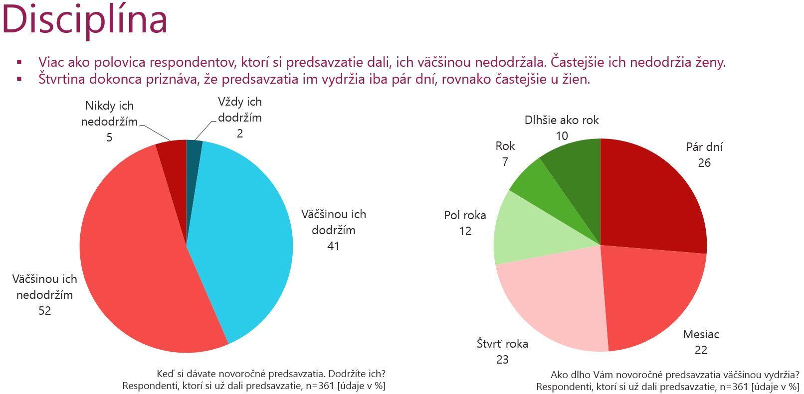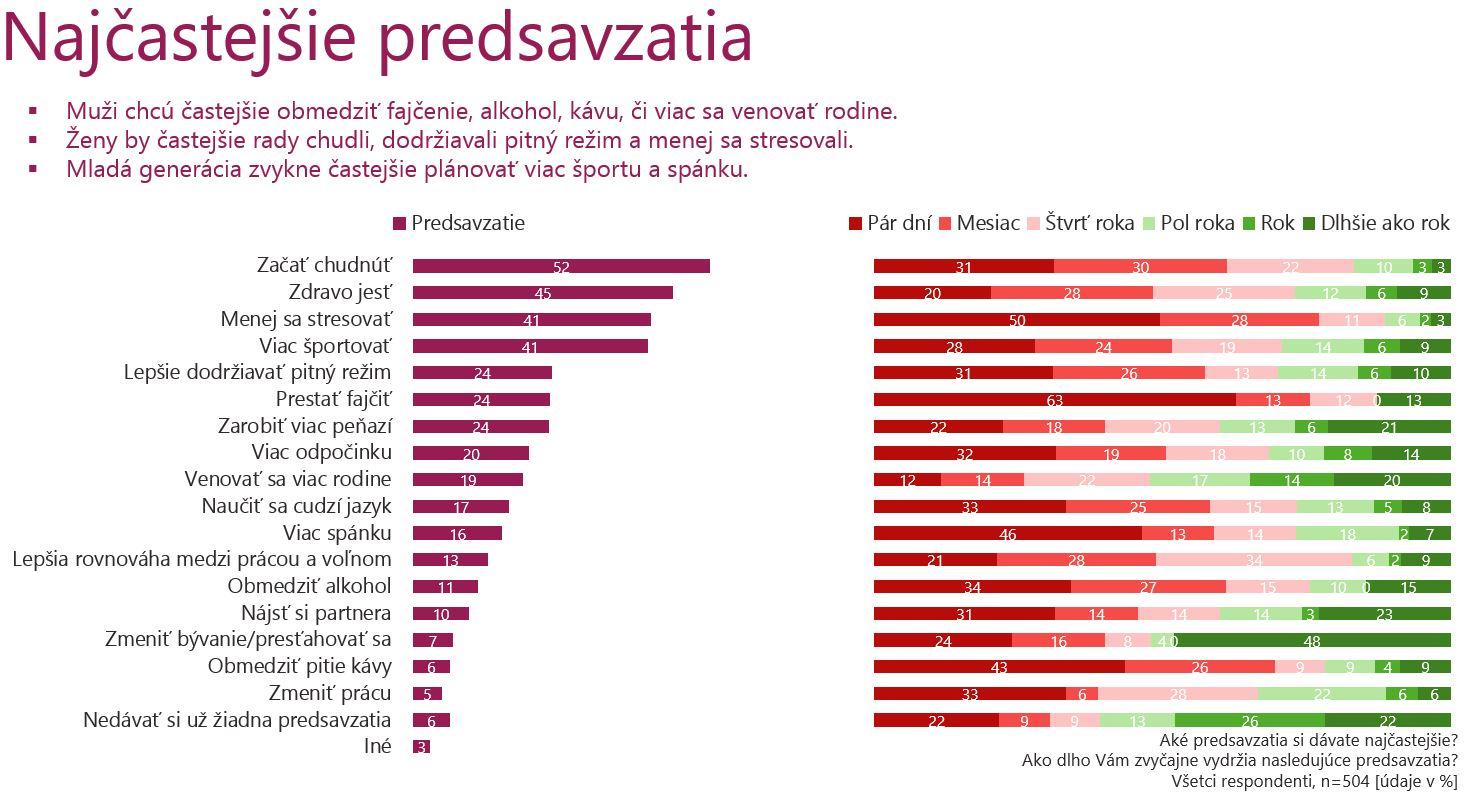Čo sa týka ich úspešnosti v plnení, 57 percent z opýtaných tvrdí, že dodržať ich im robí naozajstný problém. Ak ich však dodržia, 26 percent Slovákov tvrdí, že im to vydrží len pár dní.