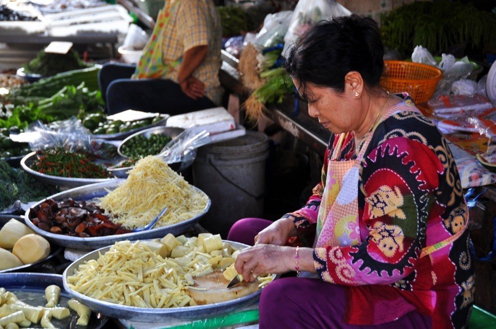 Každý domáci vie, kedy chodí vlak a ten určuje život samotného trhoviska. Miestni ho rozložili priamo na koľajisku, no jeho stánky, obchodíky a ruch sa roztečie aj do okolitých uličiek. Pohltí celý priestor tak ako to dokážu len trhoviská naplnené exotikou tvárí a tovaru. Predavačky sedia pred pultmi a ponúkajú čerstvé ryby, obrovské, výstavné kusy až po drobné rybky naukladané do okrúhlych drevených nádob pripravených na údenie. Živé kraby so zviazanými klepetami sa v lavóroch ešte hýbu a do toho sem tam vystrekne mušľa prúd vody. Ako z rozprávky a človek tu stretne viac obyvateľov riek a morí než v múzeu.