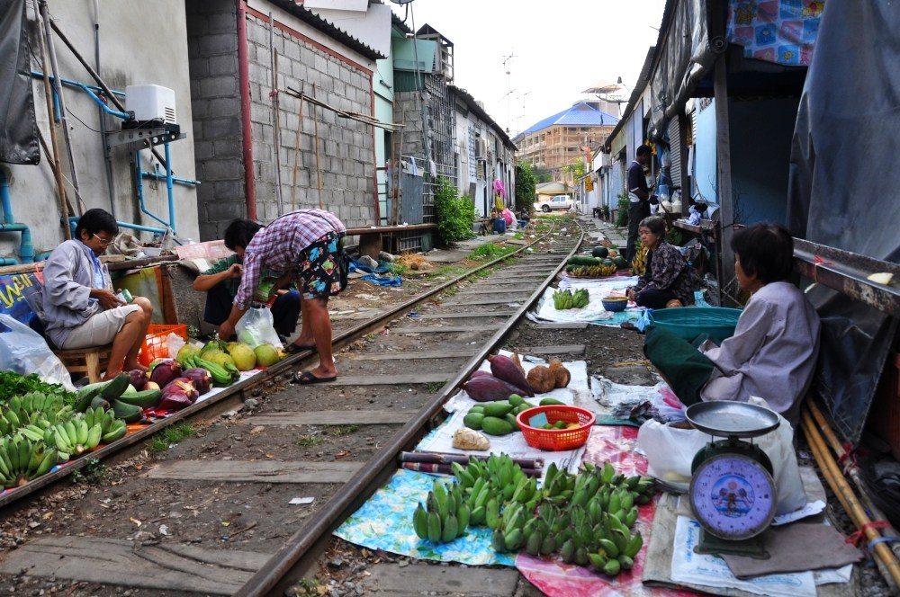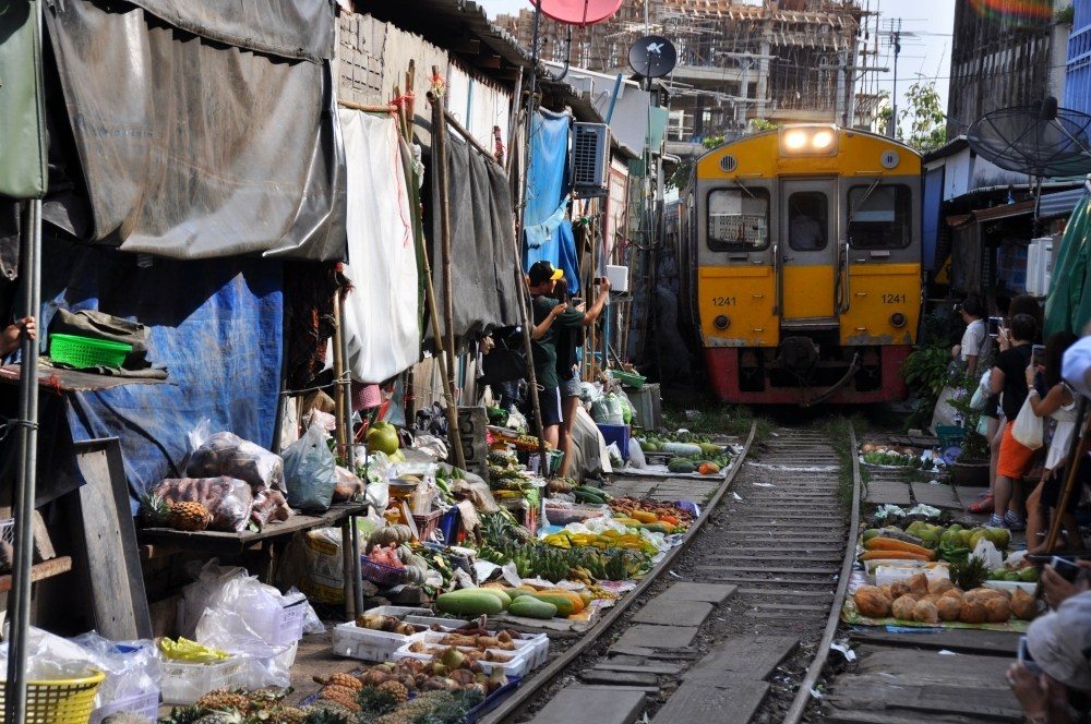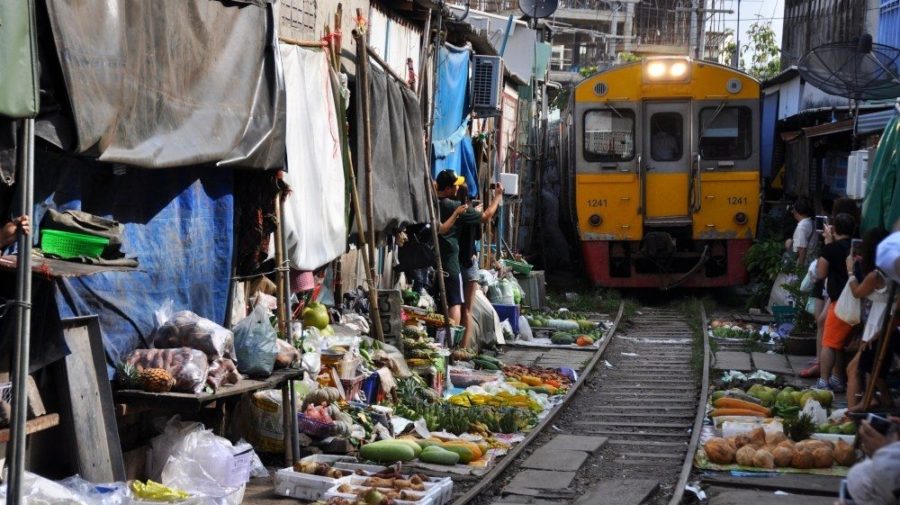 Toto thajské trhovisko je skutočný unikát. Jeho stredom totiž prechádza vlak, kvôli ktorému sa trh vždy na pár minút zastaví