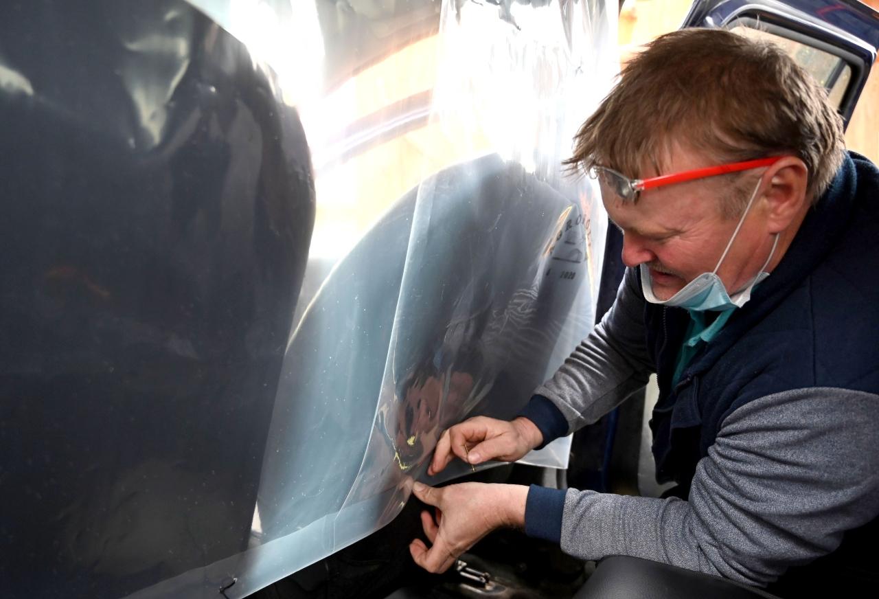 Zdalo by sa, že reštrikcie, ktoré boli z ÚVZSR nariadené vodičom, nebudú až tak dôkladne dodržiavané. Tu bola okrem plexiskla použitá aj ochranná fólia, ktorá siahala až po podlahu. Keď som sa Pavla pýtala na to, ako koronakrízu vodiči zvládajú, takmer vôbec sme sa nepočuli.