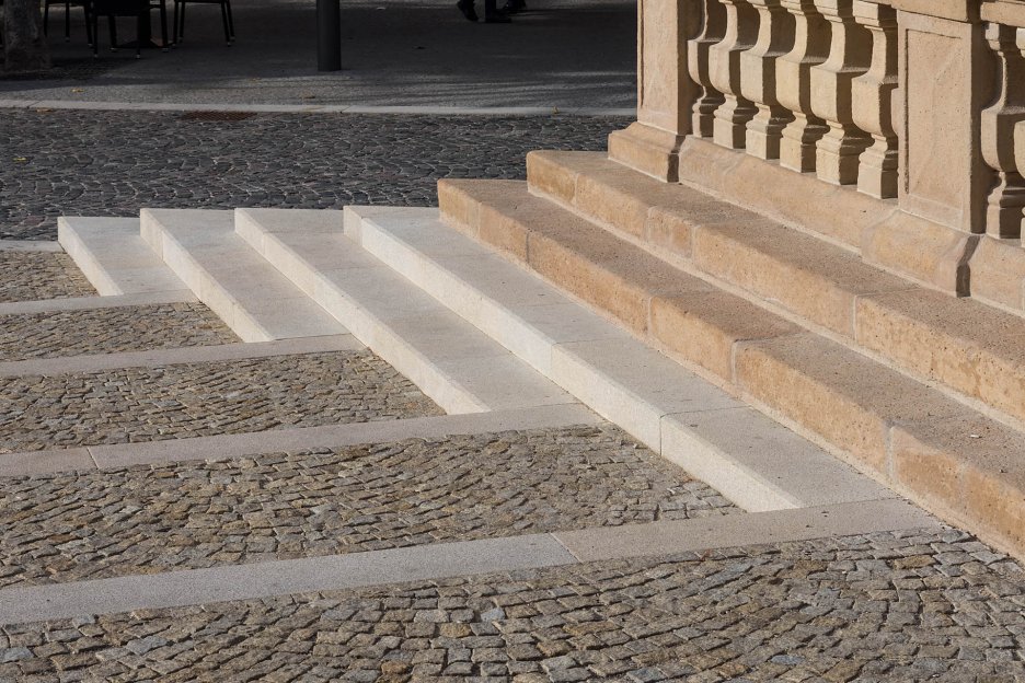 Najdôležitejšou súčasťou rekonštrukcie bola výmena povrchov. Počas vyše rok trvajúcej rekonštrukcie verejného priestoru bol pôvodný asfaltový povrch chodníkov nahradený žulovými kockami, ktoré umožňujú elegantné preklenutie rôznych výškových úrovní vstupov a prejazdov. Andezitové kocky z dláždenej plochy námestia boli pri rekonštrukcii rozobraté, očistené a znova položené.