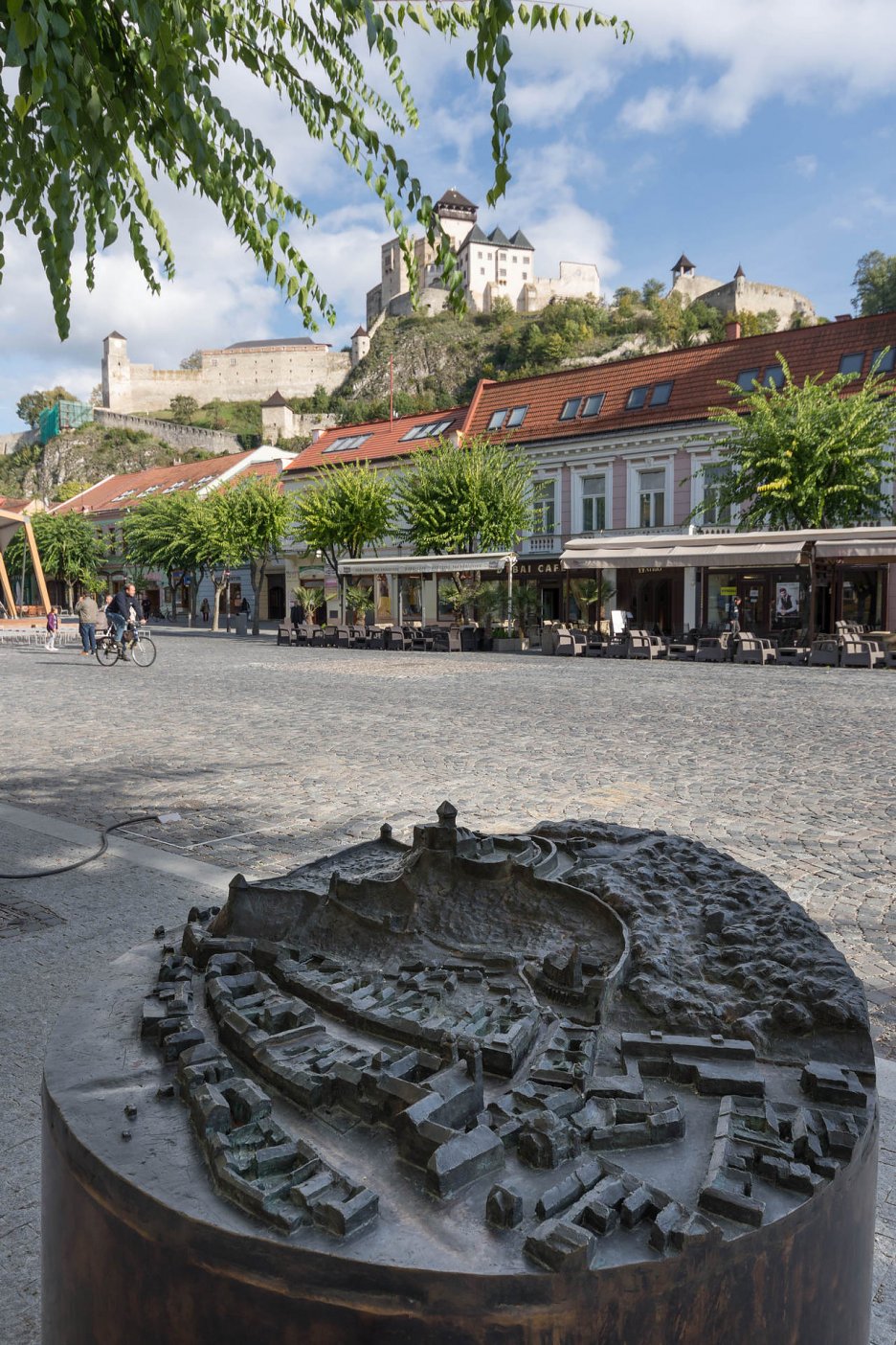 Pred piaristickým kostolom bol osadený bronzový model mesta z dielne domáceho autora, akademického sochára Igora Mosného.