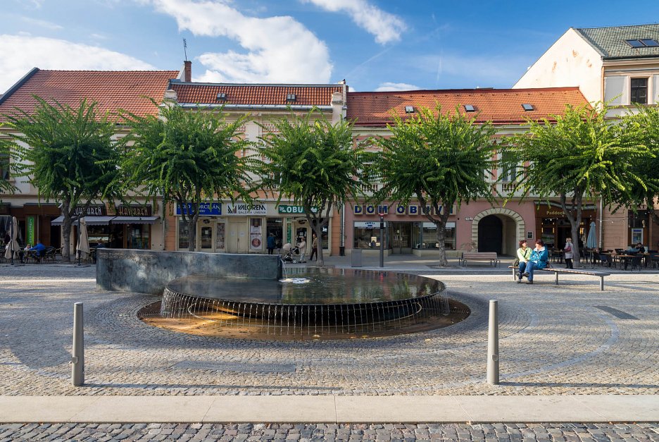Novou dominantou v priestore je bronzová fontána Marca Aurélia od akademického sochára Jiřího Plieštika.