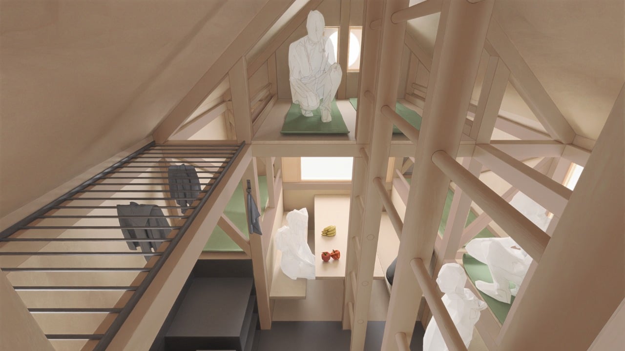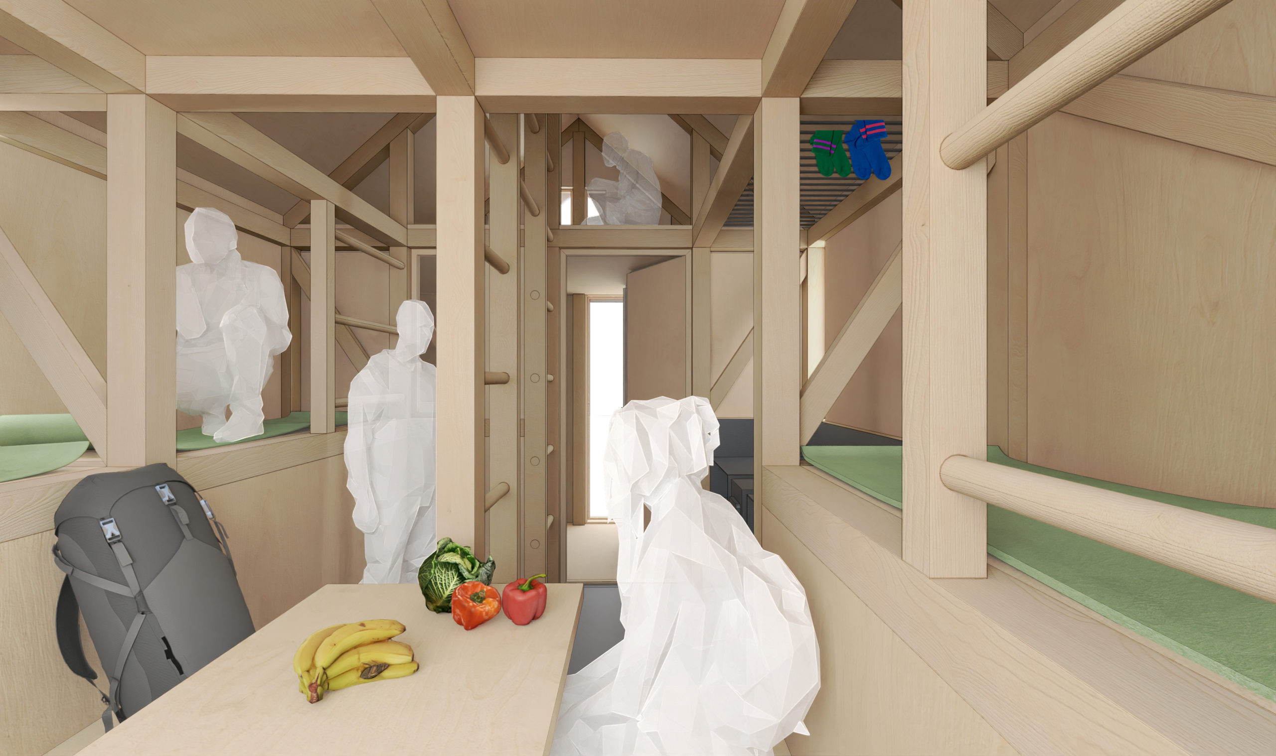 Rozprávkový domček sa nachádza uprostred listnatého lesa a návštevníkom poskytne útočisko a priestor pre odpočinok. Hoci je domček na prvý pohľad maličký, podľa vizualizácií interiéru je viditeľné, že to tak nie je. „Po vstupe do objektu sa turista ocitne v nevykurovanom uzavretom zádverí, kde sa môže oprášiť a odložiť si špinavé a mokré veci,“ uvádza madebythe na svojom Instagrame. Toto zádverie slúži aj na to, aby sa teplo pri každom otvorení dverí nedostávalo von.