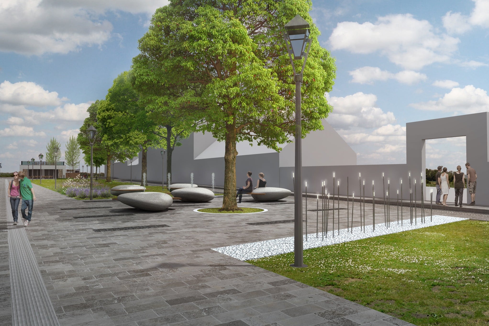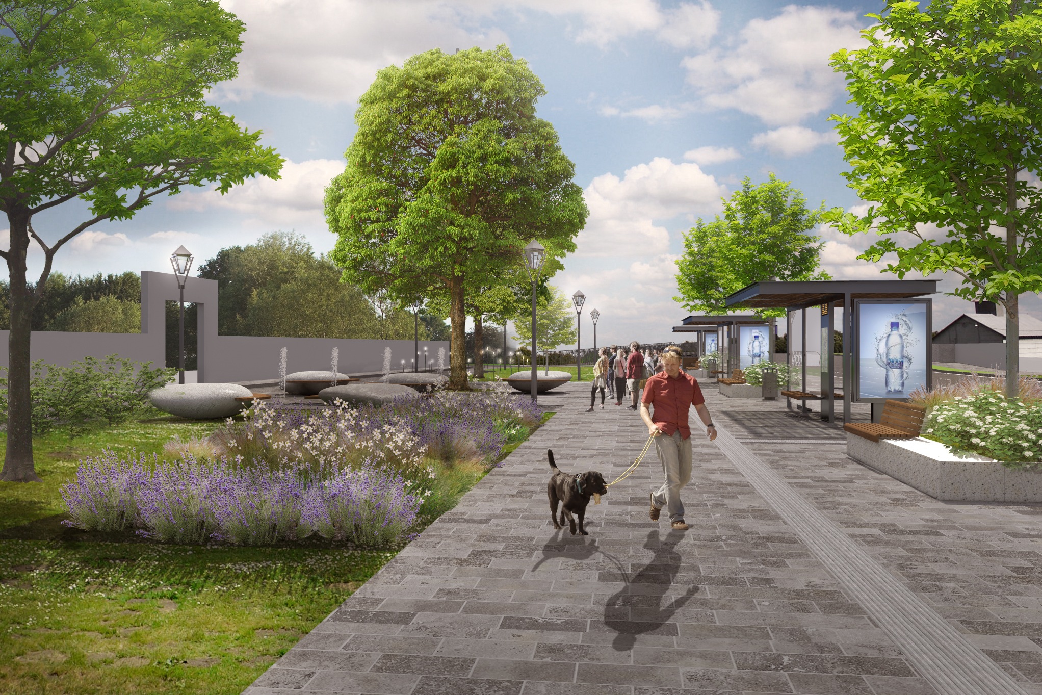 Nové budú aj autobusové zastávky oddeľované ostrovčekmi zelene s lavičkami. Pribudne nový cyklistický chodník s lávkou cez Trnávku. Priestor pre chodcov povedie novo vysadenou zeleňou s vyše štyridsiatimi odrastenými stromami, trvalkami a fontánami, nové budú aj priechody pre chodcov s bezbariérovou úpravou a verejné osvetlenie.
