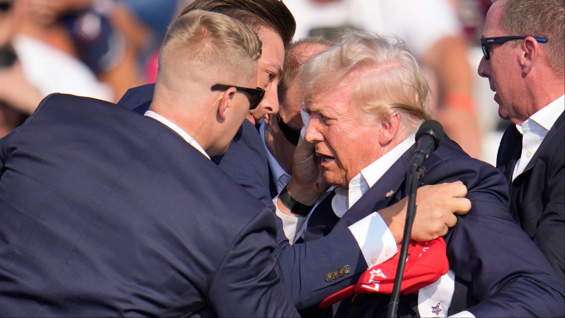 Fotografie, na ktorých Trump tesne po útoku so zakrvavenou tvárou dvíha päsť na znamenie vzdoru, potom obleteli svet. Trump deň po útoku uviedol, že chcel po streľbe pokračovať v prejave, ale tajná služba trvala na tom, že musí do nemocnice.