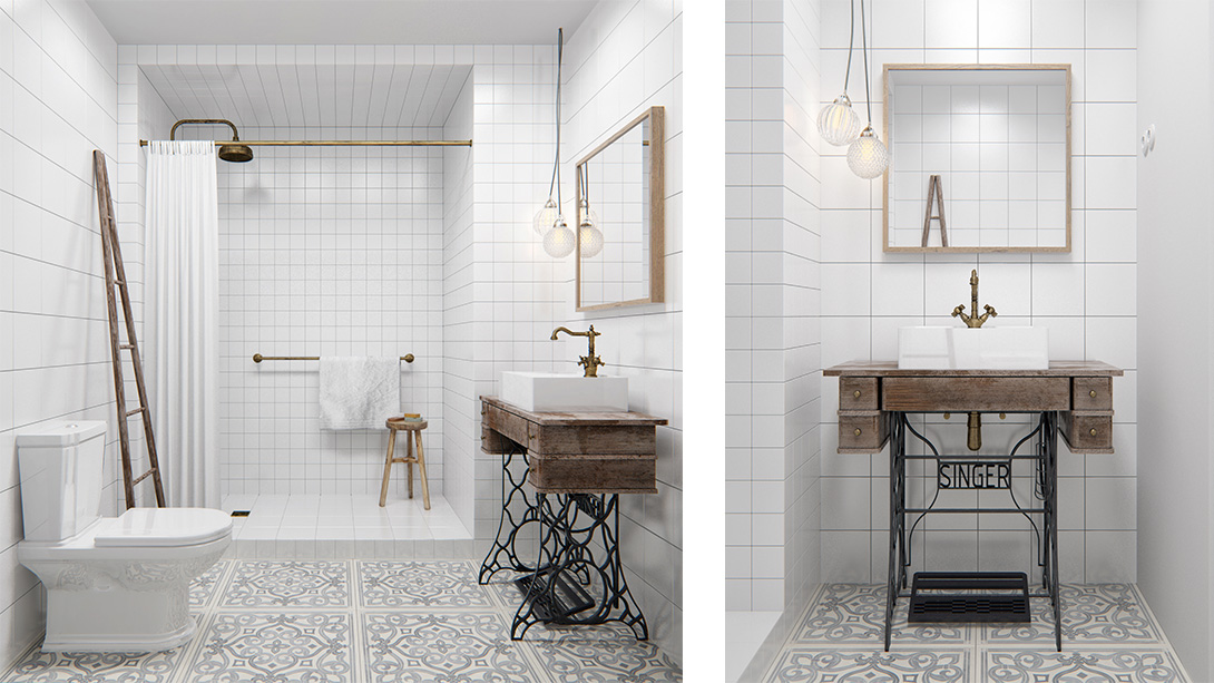 Kúpelňa je riešená jednoducho v bielej farbe s drevenými doplnkami. Priestor dýcha populárnym vintage štýlom.