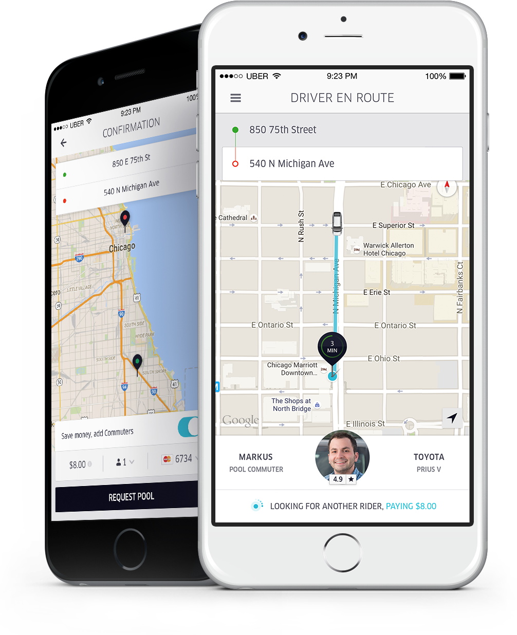 UberPool mal v San Franciscu úspech a momentálne zaznamenal viac ako 50% nárast jázd. Táto služba je hlavne o zdieľaní jazdy na základne individuálneho vyzdvihnutia – nie zdieľanie určených ciest a dochádzanie k určitému bodu vyzdvihnutia, ako to je v prípade uberHOP. Uber tiež testuje uberCOMMUTE program v Chicagu, ktorý funguje v podstate na tom istom princípe uberPool.